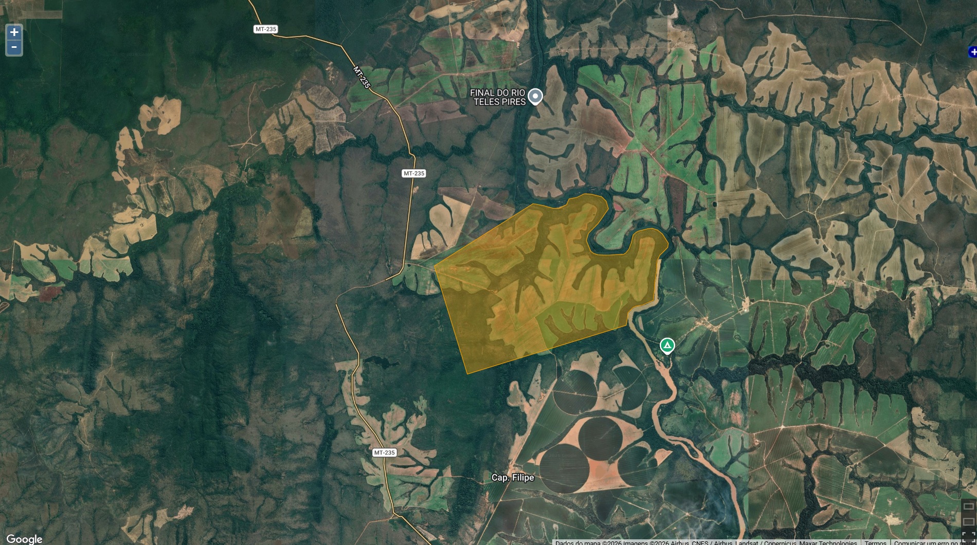 - Imóvel rural com área de 2.032,3398ha (DOIS MIL TRINTA E DOIS HECTARES, TRINTA E TRÊS ARES E NOVENTA E OITO CENTIARES), denominado Fazenda Iran I, situado no município de Santa Rita do Trivelato-MT, e os seguintes limites e confrontações: M01-M02 com azimute verdadeiro de 57°52'58", com distância de 3.022,26 metros, limitando com terras de Carlos Daly Dalcol Trevisan ; M0 2-M03 com azimute verdadeiro de 102º08'06", com distância de 817,35 metros, limitando com margem esquerda do Rio Teles Pires. M-03-M-04 azimute verdadeiro de 64º36'10", com distância de 1 . 010, 13 metros, limitando com margem esquerda do Rio Teles Pires. M04-M05 com azimute verdadeiro de 105° 38' 16", com distância de 774, 87 metros, limitando com margem esquerda do Rio Teles Pires. M05-M06 com azimute verdadeiro de 200º37'23", com distância de 1.361,28 metros, limitando com margem esquerda do Rio Teles Pires. M06-M07 com azimute verdadeiro de 103°29' 53", com distância de 959,89 metros, limitando com margem esquerda do Rio Teles Pires. M07-M08 com azimute verdadeiro de 41°47'40", com distância de 920,94 metros, limitando com margem esquerda do Rio Teles Pires. M08-M09 com azimute verdadeiro de 110°39'10", com distância de 658,28 metros, limitando com margem esquerda do Rio Teles Pires. M09-Ml0 com azimute verdadeiro de 207°04'09", com distância de 551, 04 metros, limitando com margem esquerda do Rio Teles Pires. MlO-Mll com azimute verdadeiro de 190º07'21'', com distância de 1.288,27 metros , l imitando com margem esquerda do Rio Teles Pires. Mll-M12 com azimute verdadeiro de 245°39'52", com distância de 554,77 metros, limitando com margem esquerda do Rio Teles Pires. Ml 2-Ml3 com azimute verdadeiro de 192°16'40", com distância de 423,61 metros, limitando com margem esquerda do Rio Teles Pires. Ml3-Ml4 azimute verdadeiro de 254 °21 '39" com distância de 4.867,06 metros, limitando com terras de Waldemir Benedito Ribeiro e Aramis Ranto Stoterau. M-14-M0l com azimute verdadeiro de 343º05'36", com distância de 3.237,76 metros limitando com terras de Valdecir Roque Robledo. Resumo dos limites: Norte: Carlos Daly Dalcol Trevisan e margem esquerda DO Rio Teles Pires; Sul: Waldemir Benedito Ribeiro e Aramis Renato Stoterau; Leste: Margem esquerda do Rio Teles Pires; Oeste: Valdecir Roque Robledo. Ponto de Amarração o (P.A.) Ponto de Amarração encontra-se na barra do Rio Teles Pires pela sua margem esquerda com o Córrego Capão Grande, pela sua margem direita, local onde encontra-se cravado o marco M-13 do referido lote com coordenada Geográficas de 14º07'40"S e 54º53 '56"WGR e coordenadas OTM de N: 8.437.200,00m e E: 727.000,00m. Via de Acesso. O acesso ao referido lote é feito partindo-se da sede do município de Rosário Oeste pela BR-163 no sentido para Diamantino até a o entroncamento com a MT-240, daí segue pela MT-240 até ao encontramento com a MT-140 no lugar denominado Sete Placas, daí segue por estradas vicinais 25 KM aproximadamente, até encontrar o referido lote