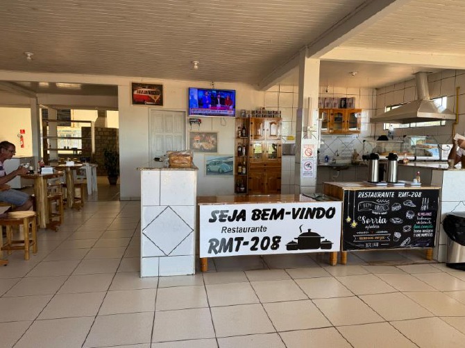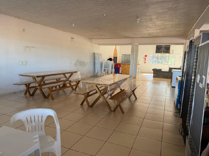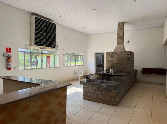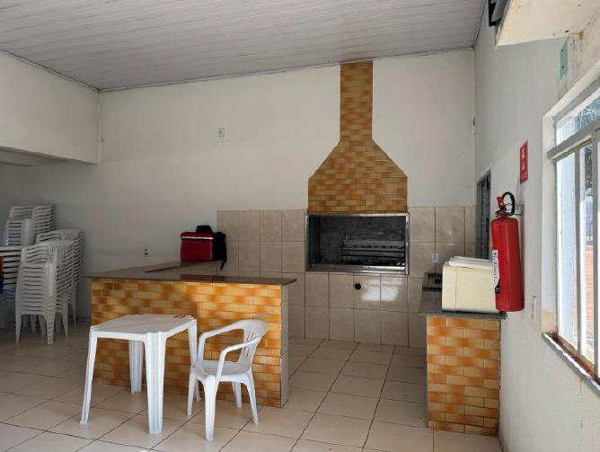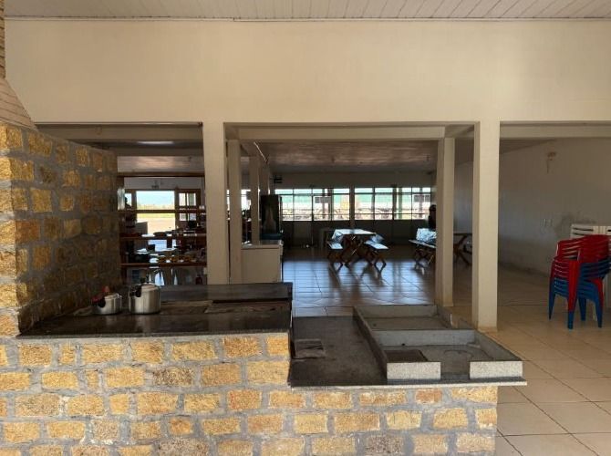 - A estrutura interna é formada pela cozinha, churrasqueira, fogão a lenha, bancada e amplo espaço para alimentação.