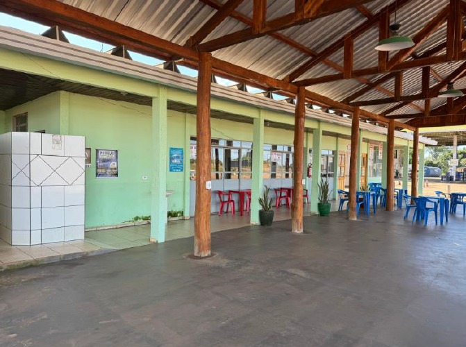 b) Como atividade secundária o local possui:- Uma Lanchonete/Restaurante com refeitório e área externa, de aproximadamente 420 m² de área construída.