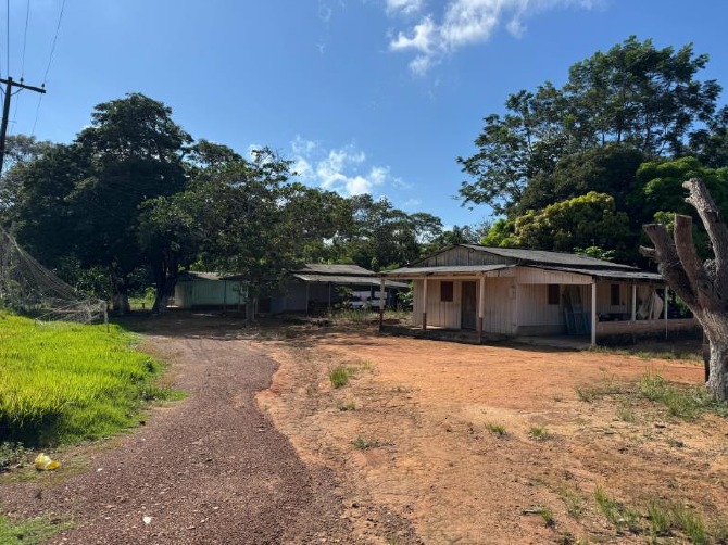 - 03 (três) casas simples de madeira mediando aproximadamente 50 m², com telha de fibrocimento, sem forro, com cerâmica nos banheiros, que estão atualmente desabitadas, servindo como depósito.